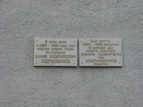 В городе Уфе, на фасаде дома № 84 по улице Цюрупы, где жил полный кавалер ордена Славы Х.Х. Абдрахманов, установлена мемориальная доска.