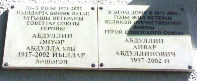 В столице Башкирии городе Уфе на фасаде дома № 23 по бульвару Ибрагимова, в котором жил Герой, установлена мемориальная доска.