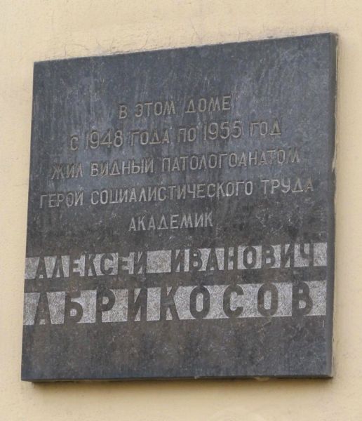 Абрикосов Алексей Иванович – советский патологоанатом, директор Института нормальной и патологической морфологии Академии медицинских наук (АМН) СССР, профессор 1-го Московского медицинского института, академик академии наук (АН) СССР, действительный член Академии медицинских наук СССР.