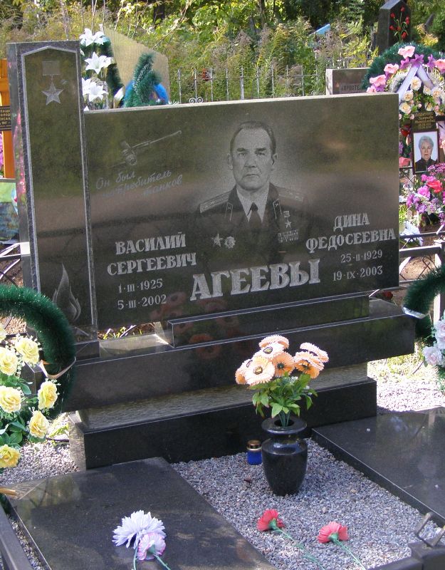 Уничтожив три пулемёта, он был сам тяжело ранен. Будучи раненым, В.С.Агеев упал за пулемёт и стал расстреливать из него немцев, уничтожив до двадцати гитлеровцев. На счету отважного бойца - 125 убитых солдат и офицеров. Кроме того, им подбито три единицы танков и самоходных орудий, два бронетранспортёра, пять пулемётов.