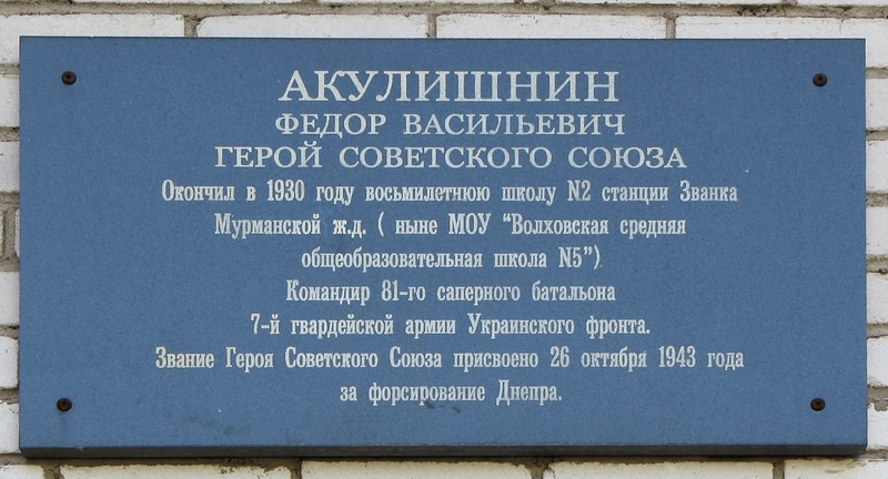В городе Волхов Ленинградской области на здании школы установлена мемориальная доска.