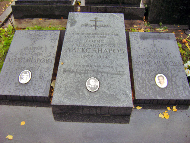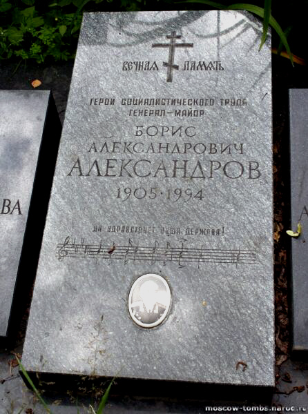 Герой Социалистического Труда, народный артист СССР, лауреат Ленинской премии, генерал-майор в отставке Александров Борис Александрович скончался 17 июня 1994 года. Похоронен в Москве на Новодевичьем кладбище (участок 3).