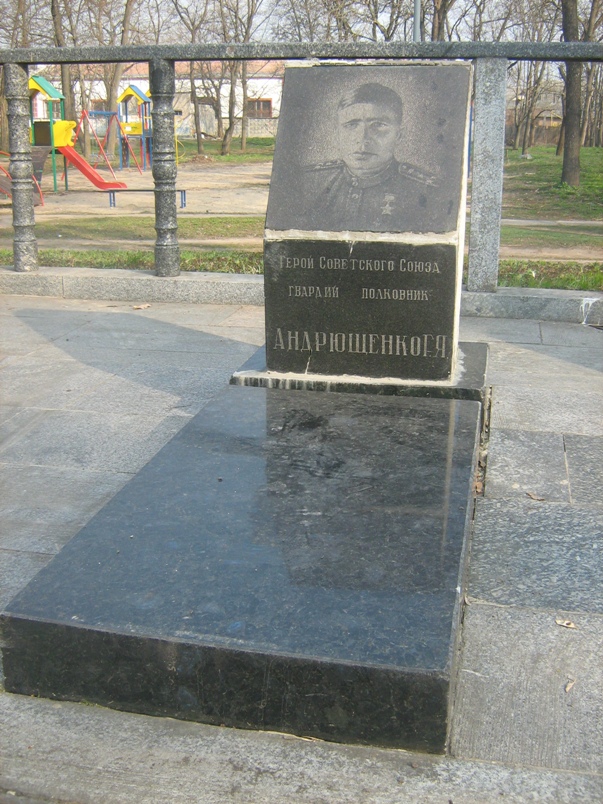 Указом Президиума Верховного Совета СССР от 17 ноября 1943 года за успешное форсирование Днепра, закрепление и расширение плацдарма на западном берегу реки и проявленные при этом отвагу и геройство заместителю командира 6-го гвардейского танкового корпуса гвардии полковнику Андрющенко Григорию Яковлевичу присвоено звание Героя Советского Союза (посмертно).