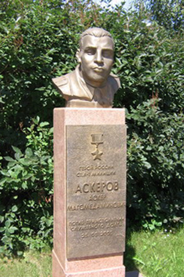 Установлен в селе Халимбекаул Буйнакского района Республики Дагестан на территории школы, носящей имя А.М.Аскерова. Фото предоставлено вдовой Героя - Разият Аскеровой, 2008 год.