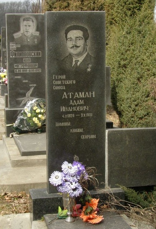 Атаман Адам Иванович – командир взвода 795-го стрелкового полка 228-й стрелковой дивизии 53-й армии 2-го Украинского фронта, лейтенант.