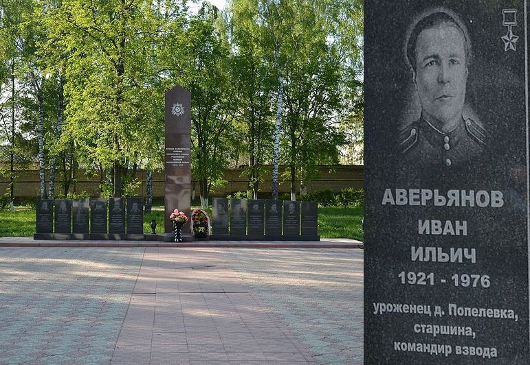 Командир стрелкового взвода 1035-го стрелкового полка (280-я стрелковая дивизия, 60-я армия, Центральный фронт) комсомолец старшина Иван Аверьянов 26 сентября 1943 года вместе со взводом одним из первых в батальоне форсировал реку Днепр севернее столицы Украины Киева.