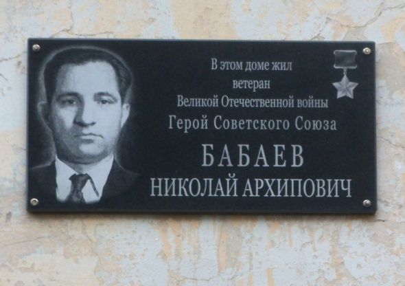 Бабаев Николай Архипович – командир бронетранспортёра роты управления 53-й гвардейской Фастовской ордена Ленина Краснознамённой ордена Богдана Хмельницкого танковой бригады 6-го гвардейского Киевско-Берлинского ордена Ленина Краснознамённого орденов Суворова 2-й степени и Богдана Хмельницкого 2-й степени танкового корпуса 3-й гвардейской танковой армии 1-го Украинского фронта, гвардии старший сержант.