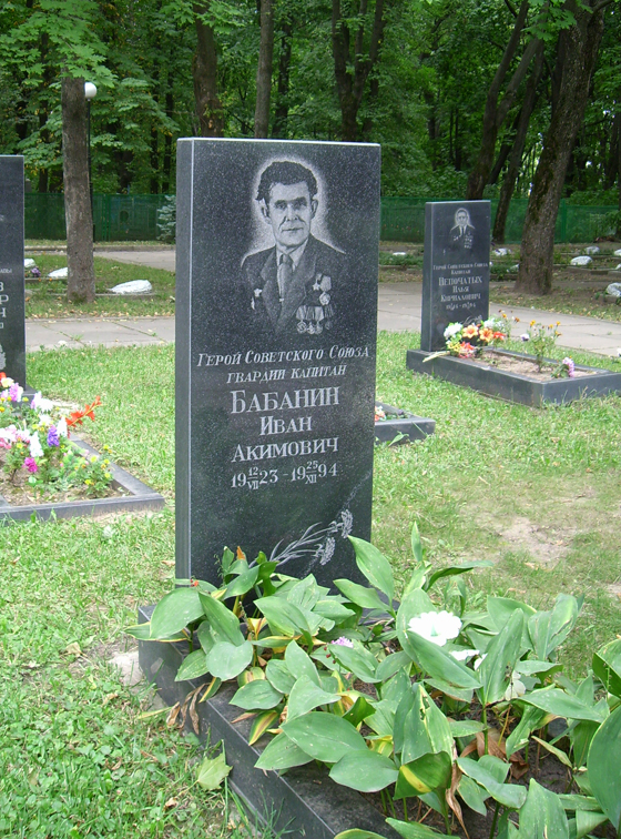 Бабанин Иван Акимович - командир стрелкового взвода 305-го гвардейского стрелкового Нижнеднестровского полка (108-я гвардейская стрелковая Николаевская Краснознамённая ордена Суворова 2-й степени дивизия, 37-й стрелковый корпус, 46-я армия, 2-й Украинский фронт), гвардии младший лейтенант.