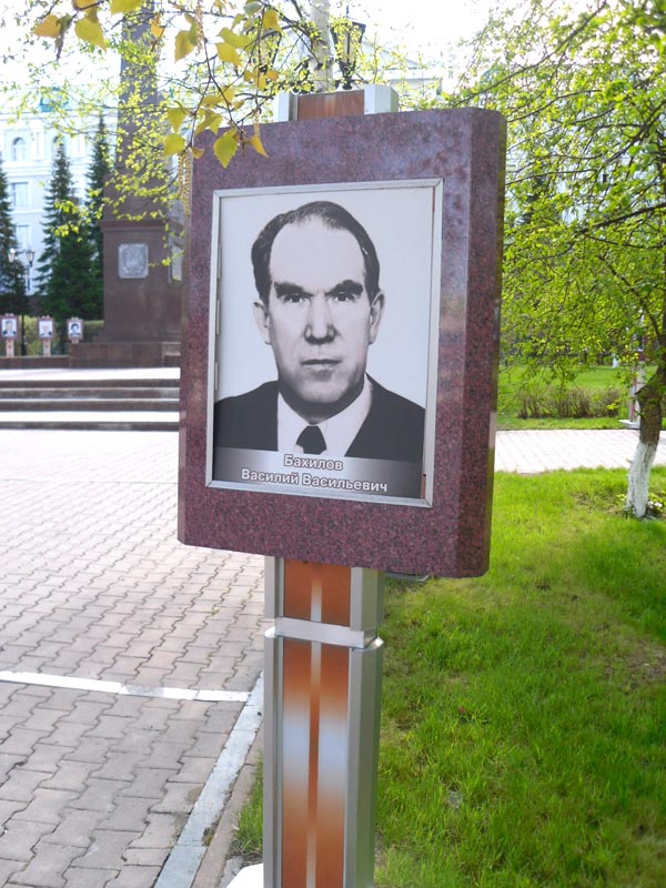 Стела с портретом установлена в городе Ханты-Мансийск у здания Правительства ХМАО-Югры на аллее Почётных граждан Ханты-Мансийского округа. Фото Алексея Шабанова. 25.05.2011 г.
