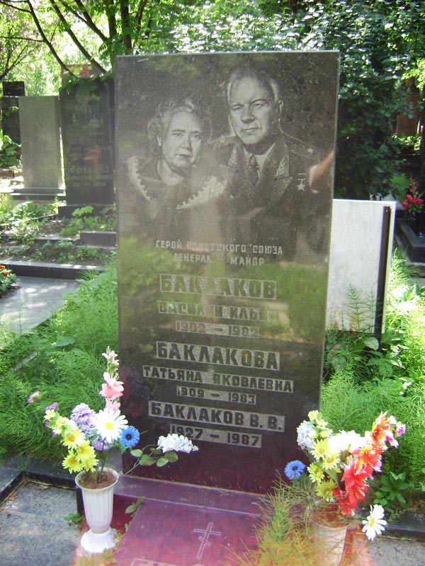 Капитан В.И. Баклаков - в действующей армии на фронтах Великой Отечественной войны с июля 1941 года. В качестве командира разведывательного батальона 107-й стрелковой дивизии капитан Баклаков сражался в 24-й амии Резервного и Западного фронтов, участник Смоленского оборонительного сражения. В районе города Ельня 1 сентября 1941 года был тяжело ранен, 5 месяцев находился в госпитале.