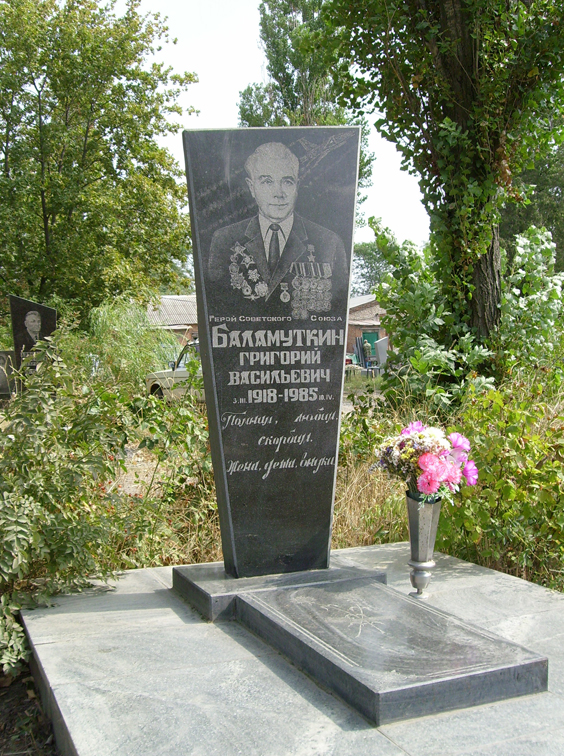 Баламуткин Григорий Васильевич - заместитель командира эскадрильи 431-го Слуцкого Краснознамённого штурмового авиационного полка 299-й Нежинской Краснознамённой ордена Суворова II степени штурмовой авиационной дивизии 16-й воздушной армии 1-го Белорусского фронта, старший лейтенант.