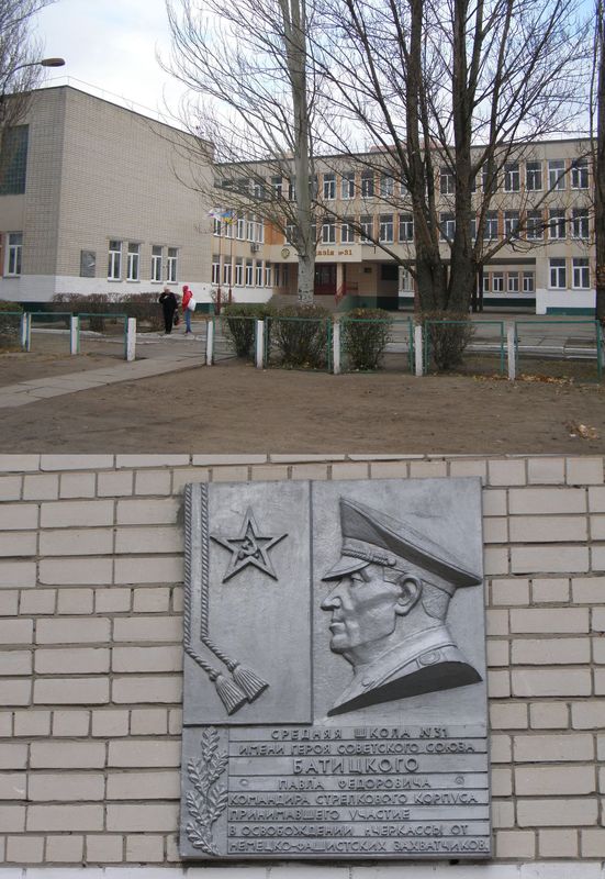 Установлена на здании гимназии № 31 имени П.Ф.Батицкого в городе Черкассы (Украина). Фото Олега Кожухаря, 05.12.2011.