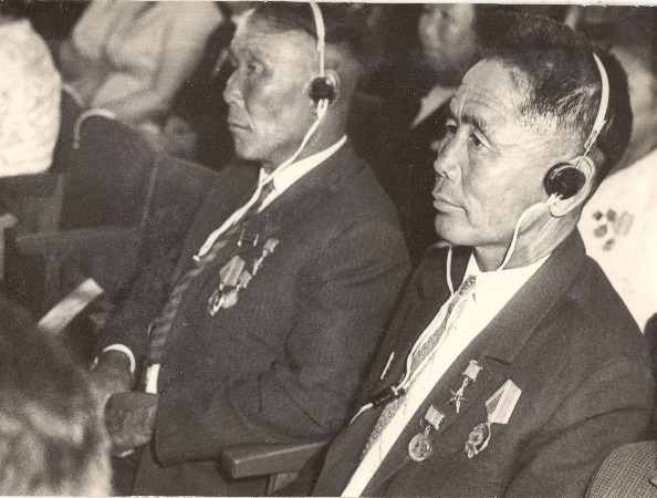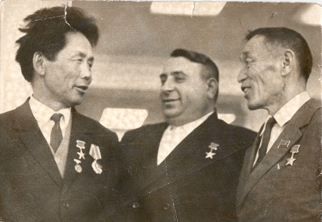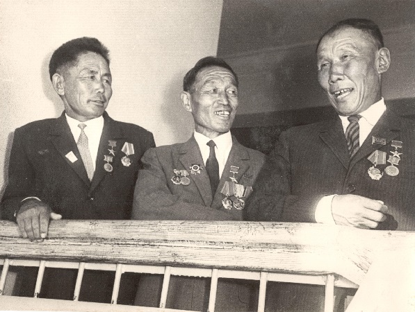 Бавун-оол (слева) и Герой Советского Союза Ч.Хомушку (в центре).