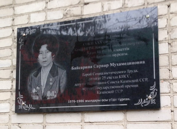 В Петропавловске на доме, где жила С. М. Байсарина, установлена мемориальная доска (2018).