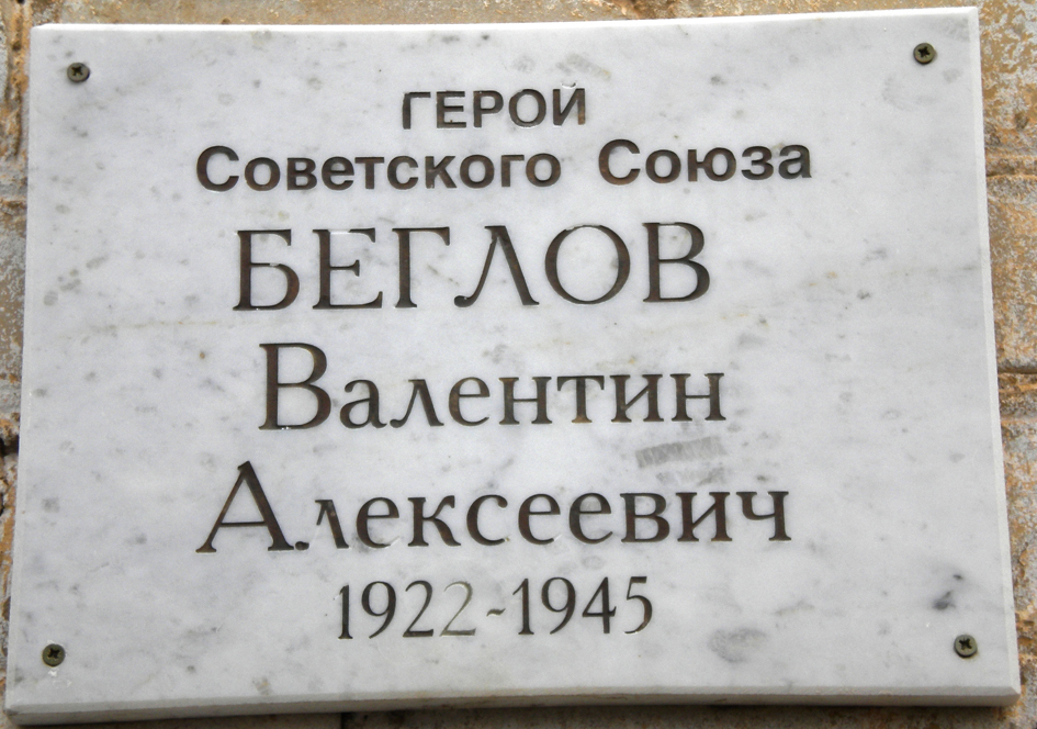 Указом Президиума Верховного Совета СССР от 27 июня 1945 года за мужество, отвагу и героизм, проявленные в борьбе с немецко-фашистскими захватчиками, капитану Беглову Валентину Алексеевичу присвоено звание Героя Советского Союза посмертно.