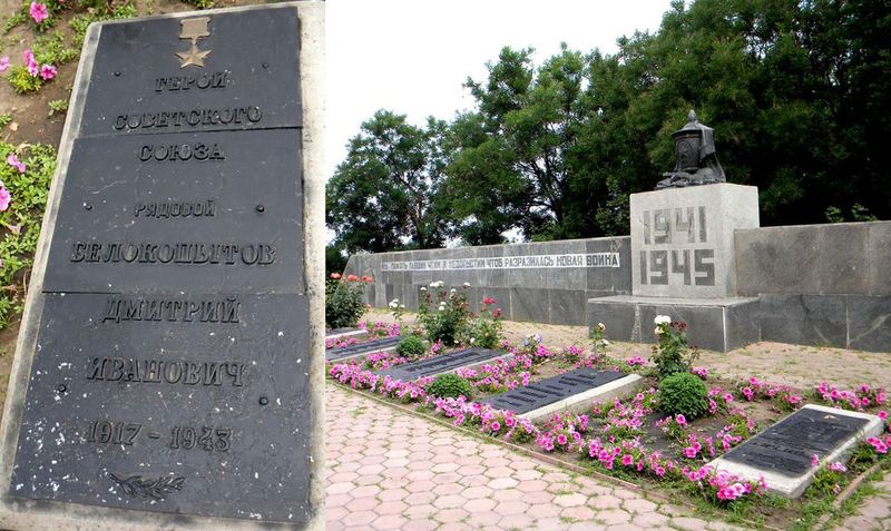 Стрелок 592-го стрелкового полка (203-я стрелковая дивизия, 12-я армия, Юго-Западный фронт) красноармеец Белокопытов отличился в боях при форсировании Днепра в районе села Петро-Свистуново (Вольнянский район Запорожской области).