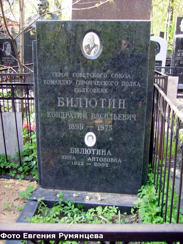 Фото Билютина К.В. (1944 год) любезно предоставлено племянницей Героя - Тульской (урождённой Билютиной) Ларисой Иосифовной, её супругом - Александром Семёновичем и их сыновьями - Александром и Евгением Тульскими (город-герой Москва). Биография дополнена Антоном Бочаровым (пос.Кольцово Новосибирской области).