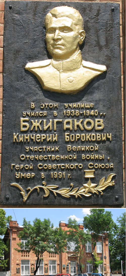 Бжигаков Камчари Барокович - командир взвода 82-миллиметровой миномётной батареи 7-го гвардейского Перемышльского кавалерийского полка 2-й гвардейской Крымской дважды Краснознаменной ордена Богдана Хмельницкого имени Совнаркома УССР кавалерийской дивизии 1-го гвардейского Житомирского Краснознаменного кавалерийского корпуса 1-го Украинского фронта, гвардии старший лейтенант.