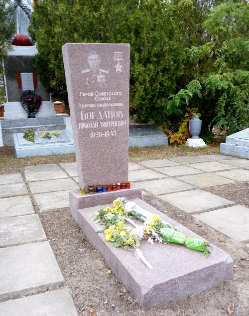 31 января 1945 года в боях за освобождение Польши командир 255-го истребительно-противотанкового артиллерийского полка 11-й гвардейской отдельной истребительно-противотанковой артиллерийской бригады гвардии подполковник Богданов Н.Д. пал смертью храбрых. Был похоронен на центральном кладбище города Львов. Позднее прах Героя перезахоронен в его родном селе Любимовка Днепропетровского района Днепропетровской области Украины.