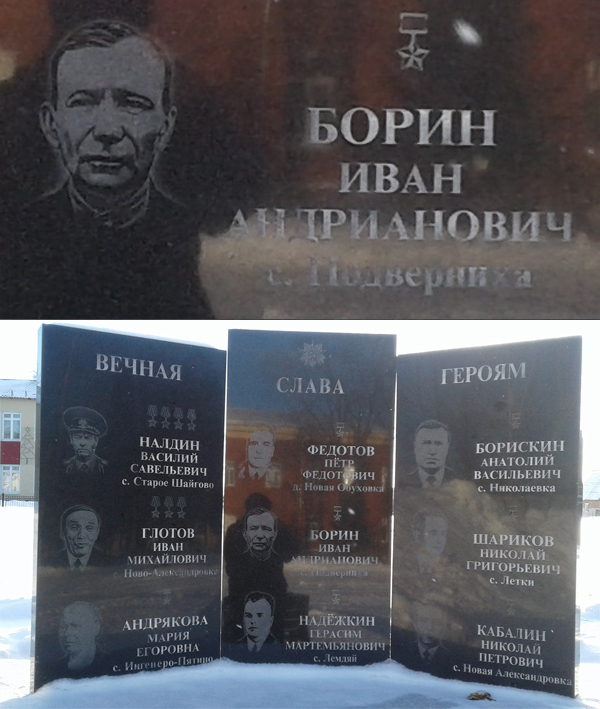 8 мая 1945 года командование 1-го гвардейского кавалерийского корпуса представило отважного артиллериста Ивана Андреевича Борина вместе с другими воинами к высшей награде Родины – званию Героя Советского Союза. В 1946 году И.А.Борин с Золотой Звездой вернулся в Мордовию.