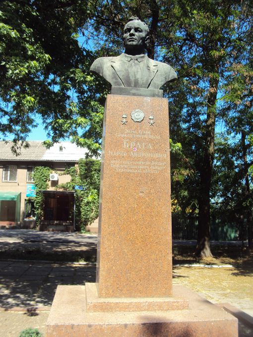 Бюст М.А.Браги установлен на Аллее Героев в городе Голая Пристань.