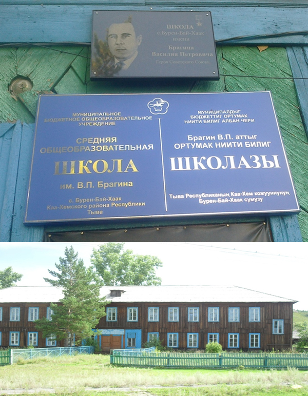 Его именем названа улица в селах Бурен-Бай-Хаак и Ермаковское. В 2015 году школе села Бурен-Бай-Хаак присвоено имя Героя Советского Союза Брагина В. П.