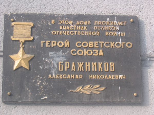 На доме, в котором жил А.Н.Бражников в Запорожье, установлена мемориальная доска.