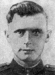 В одной из таких вылазок с паре с красноармейцем уничтожил немецкий корреткировочный пост (12 человек), но сам получил тяжелое ранение. Остался вести бой до прибытия подкрепления. Был представлен к званию Героя Советского Союза, но награда заменена на орден Ленина.