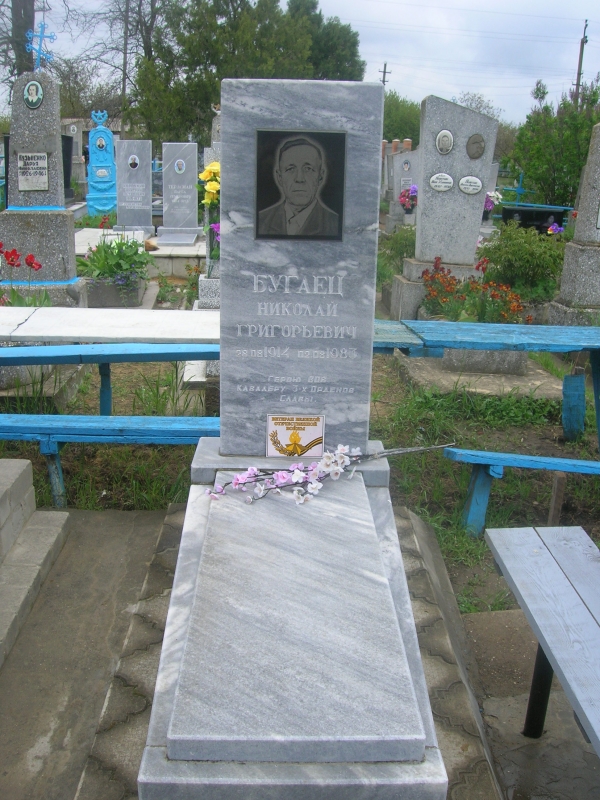 Бугаец Николай Григорьевич - помощник командира взвода 1161-го стрелкового полка (351-я стрелковая дивизия, 18-я армия, 1-й Украинский фронт), старший сержант – на момент представления к награждению орденом Славы 1-й степени.