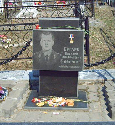 Тяжело раненый, Виталий Бугаев продолжал отстреливаться от наседавших бандитов. Но боевики подступали все ближе. Уже четко различимы в мареве порохового дыма перекошенные от ярости лица врагов. Конец. Спасенья нет. Подпустив противника, Виталий сжал в руке гранату... Выдернуть чеку не успел. Выстрел в упор оборвал жизнь старшего сержанта...