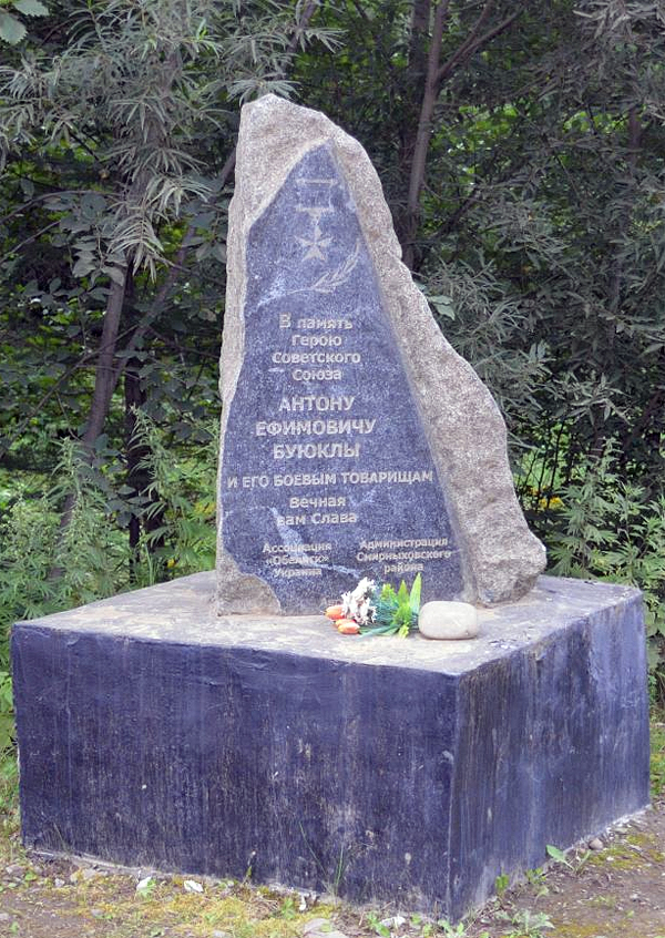 Указом Президиума Верховного Совета СССР от 6 мая 1965 года за образцовое выполнение боевых заданий командования на фронте борьбы с японскими милитаристами и проявленные при этом отвагу и геройство старшему сержанту Буюклы Антону Ефимовичу посмертно присвоено звание Героя Советского Союза.