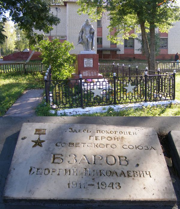 Командир 32-го гвардейского стрелкового полка (12-я гвардейская стрелковая дивизия, 61-я армия, Центральный фронт) гвардии подполковник Бзаров Г.Н. в ночь на 29 сентября 1943 года умело осуществил форсирование реки Днепр в районе деревни Глушец Лоевского района Гомельской области Белоруссии. Его полк захватил плацдарм, обеспечив тем самым дальнейшее наступление дивизии. При отражении вражеской контратаки 23 ноября 1943 года отважный комполка был тяжело ранен. Его переправили на восточный берег Днепра. В селении Радуль, где размещался дивизионный полевой госпиталь, военные врачи боролись за его жизнь, но ранение было смертельным. Похоронен в посёлке городского типа Радуль Репкинского района Черниговской области Украины.