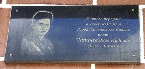 Чапичев Яков Иудович (Иегудович) - заместитель командира батальона по политической части – агитатор 243-го стрелкового Волжского полка 181-й стрелковой Сталинградской ордена Ленина Краснознамённой дивизии 6-й армии 1-го Украинского фронта, майор.