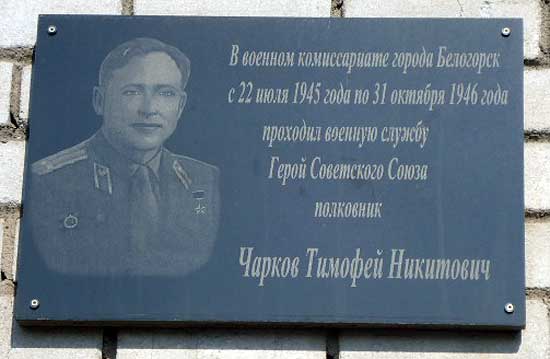 Вскоре был отправлен на курсы подготовки работников военных комиссариатов в Новосибирск. После их окончания вновь направлен на Дальний Восток, в военкомат узловой станции Куйбышевка-Восточная (ныне город Белогорск) в Амурской области. В 1945 году окончил курсы усовершенствования офицерского состава (КУОС). В конце 1946 года был назначен начальником первого отдела военкомата Дубровинского района Тюменской области. После этого служил военным комиссаром Вагайского района, в 1962–1970 годах – военным комиссаром Абатского района, в 1970–1972 годах – военным комиссаром Тюменского района. С 1972 года полковник Т.Н.Чарков – в запасе.