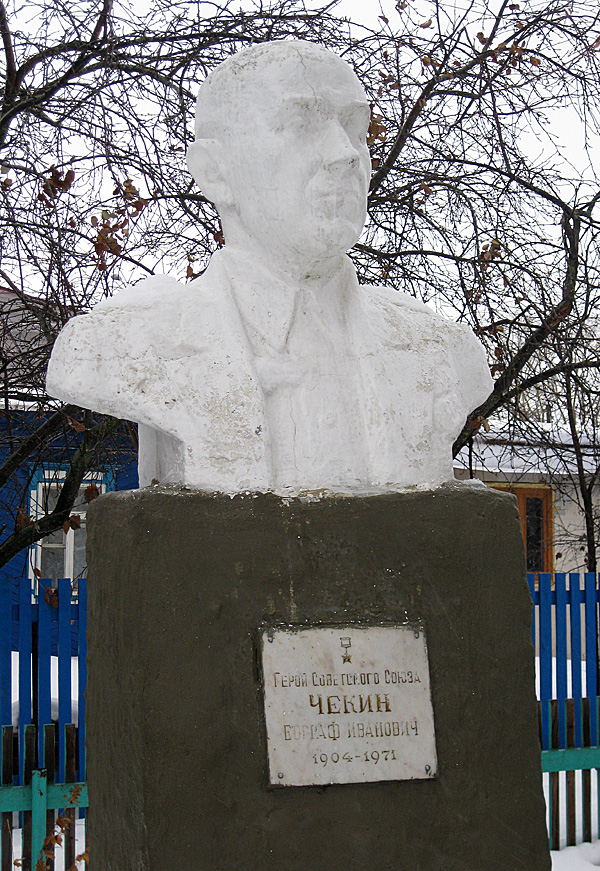 Чекин Евграф Иванович - командир взвода 929-го стрелкового полка (254-я стрелковая дивизия, 52-я армия, 2-й Украинский фронт), старший лейтенант.