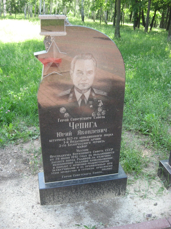 Чепига Юрий Яковлевич – штурман 952-го штурмового авиационного Оршанского Краснознаменного ордена Кутузова полка (311-я штурмовая авиационная Молодечненская Краснознаменная дивизия, 1-я воздушная армия, 3-й Белорусский фронт), майор.