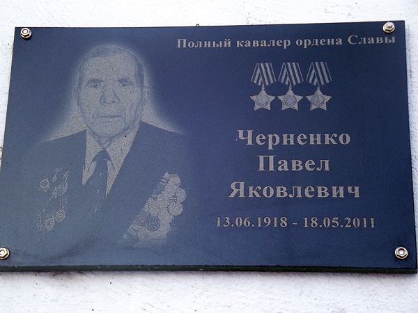 На здании Москаленского районного военного комиссариата установлена мемориальная доска Полному кавалеру ордена Славы – Черненко Павлу Яковлевичу.