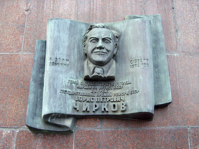 В Москве на доме, в котором жил Б.П.Чирков, установлена мемориальная доска.