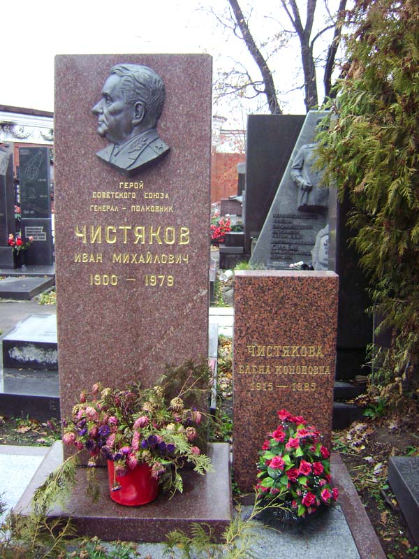 Иван Михайлович Чистяков скончался 7 марта 1979 года. Похоронен в Москве на Новодевичьем кладбище (участок 7).