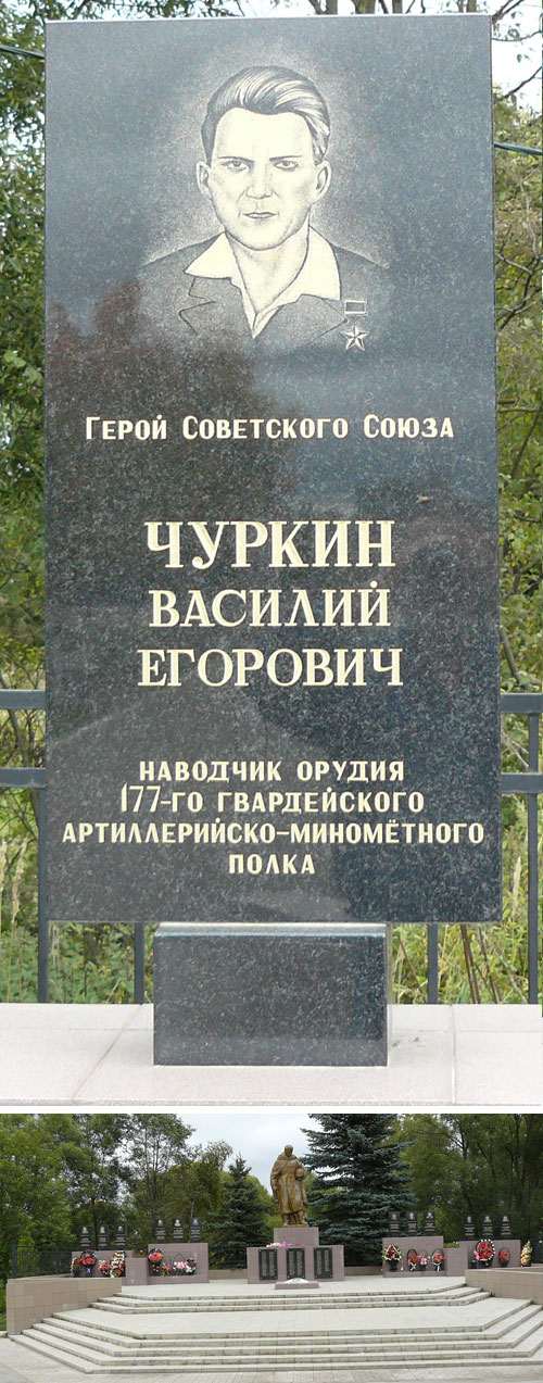 Чуркин Василий Егорович - наводчик орудия 177-го гвардейского артиллерийско-миномётного полка 2-й гвардейской кавалерийской дивизии 1-го гвардейского кавалерийского корпуса 1-го Украинского фронта, гвардии ефрейтор.