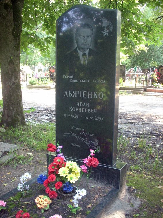 Дьяченко Иван Корнеевич – командир огневого взвода минометной батареи 738-го Краснознаменного стрелкового полка (134-я Вердинская Краснознаменная стрелковая дивизия, 61-й стрелковый корпус, 69-я армия, 1-й Белорусский фронт), старший лейтенант.