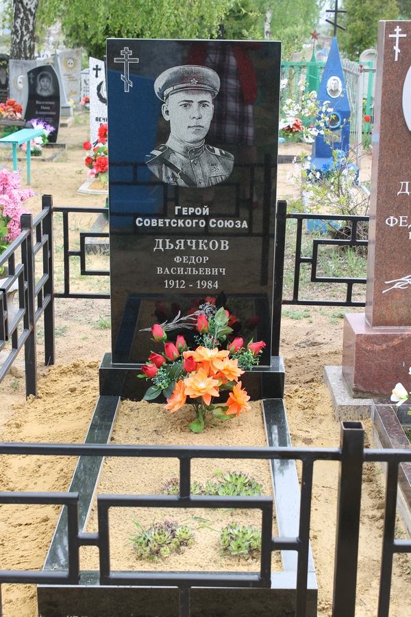 Дьячков Фёдор Васильевич - механик-водитель танка 47-й гвардейской танковой Уманской Краснознамённой ордена Суворова 2-й степени бригады (9-й гвардейский танковый корпус, 2-я гвардейская танковая армия, 1-й Белорусский фронт), гвардии старшина.