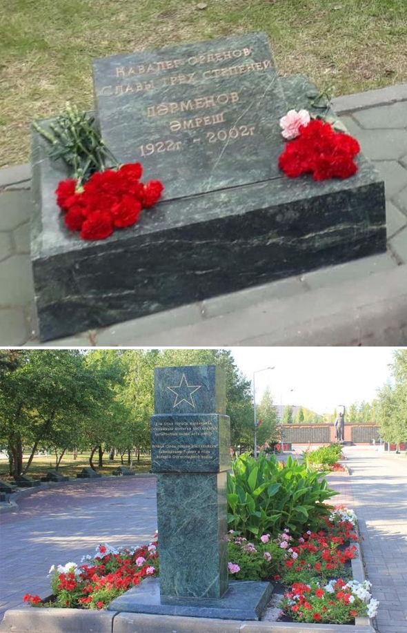 Дарменов Амреш – командир разведывательного отделения взвода пешей разведки 609-го стрелкового полка 139-й стрелковой дивизии (49-я армия, 2-й Белорусский фронт), сержант – на момент представления к награждению орденом Славы 1-й степени.