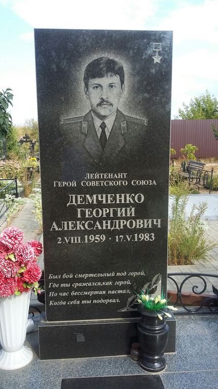 Демченко Георгий Александрович – командир 2-го взвода 7-й роты Кунарского батальона (войсковая часть полевая почта 93992) 66-ой отдельной мотострелковой бригады 40-й армии Краснознамённого Туркестанского военного округа (ограниченный контингент советских войск в Демократической Республике Афганистан), лейтенант.
