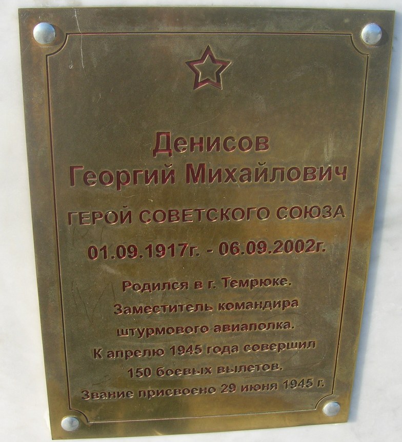 Денисов Георгий Михайлович - заместитель командира полка, он же летчик-инспектор по технике пилотирования 683-го штурмового авиационного Полоцкого ордена Суворова 3-й степени полка (335-я штурмовая авиационная Витебская Краснознаменная, ордена Суворова 2-степени дивизия, 3-я воздушная армия, 3-й Белорусский фронт), майор.