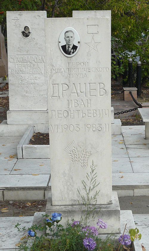 Указом Президиума Верховного Совета СССР от 11 января 1957 года за особые заслуги в освоении целинных и залежных земель, проведении уборки урожая и хлебозаготовок в 1956 годуДрачёву Ивану Леонтьевичу присвоено звание Героя Социалистического Труда с вручением ордена Ленина и Золотой медали «Серп и молот».