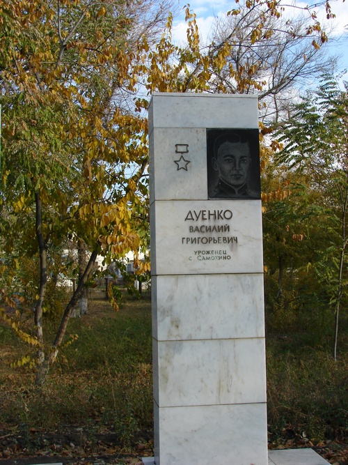 Дуенко Василий Григорьевич – командир стрелковой роты 645-го стрелкового Краснознамённого полка (202-я стрелковая Корсуньская Краснознамённая дивизия, 33-й стрелковый корпус, 27-я армия, 2-й Украинский фронт), старший лейтенант.