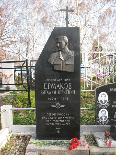 * В ряде публикаций СМИ ошибочно указано воинское звание В.Ю. Ермакова - "капитан". ** Иногда указывается дата гибели - 1 января 1995 года.