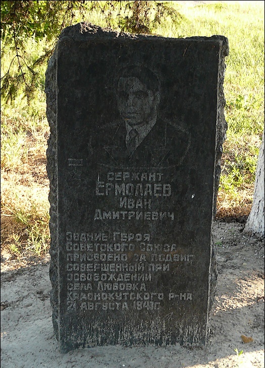 Сержант И.Д. Ермолаев в августе 1943 года участвовал в отражении контратаки танков и пехоты противника в районе села Любовка (Краснокутский район, Харьковская область). Прямым попаданием из орудия он уничтожил тяжелый танк "тигр" и три средних танка.