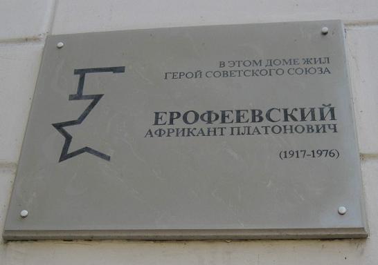 Указом Президиума Верховного Совета СССР от 4 февраля 1944 года за образцовое выполнение боевых заданий командования на фронте борьбы с немецко-фашистскими захватчиками и проявленные при этом отвагу и геройство майору Ерофеевскому Африканту Платоновичу присвоено звание Героя Советского Союза с вручением ордена Ленина и медали «Золотая Звезда» (№3600).
